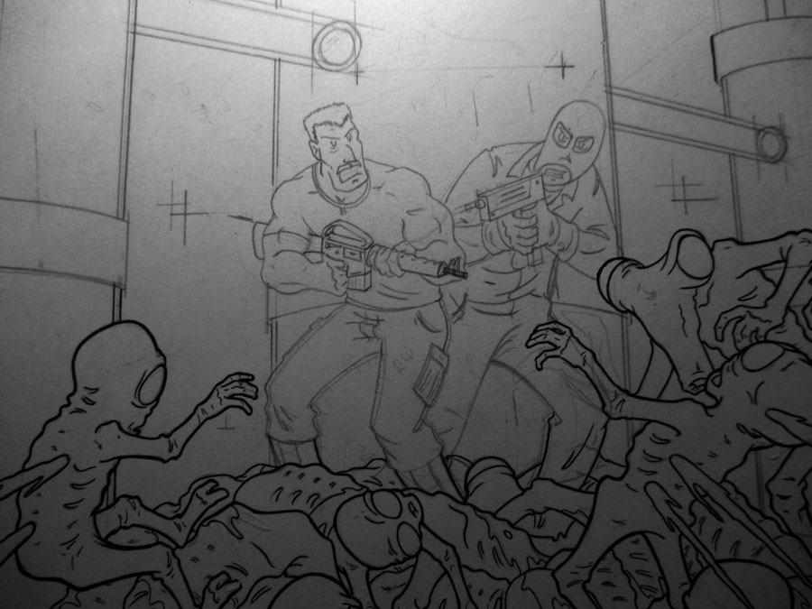 drawing up of pin up/ splash page no2 of 3