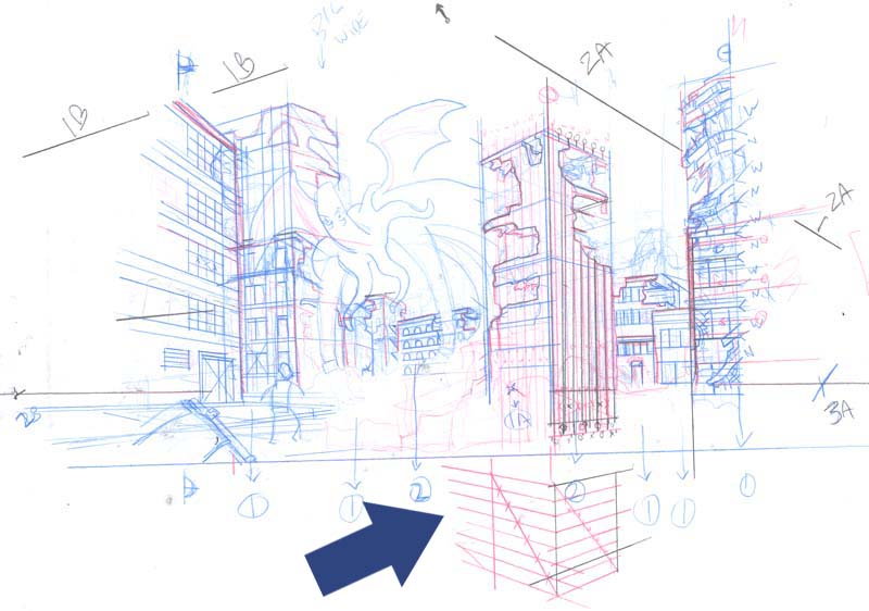 where I figure out the horizon line and vanishing points so